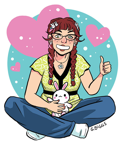 Gina Biggs (she/her) has been creating and publishing comics since 2003. Her primary focus is in exploring the many facets of love, romance, and friendship. She is a big fan of Sailor Moon, Steven Universe, sci-fi, and fantasy.